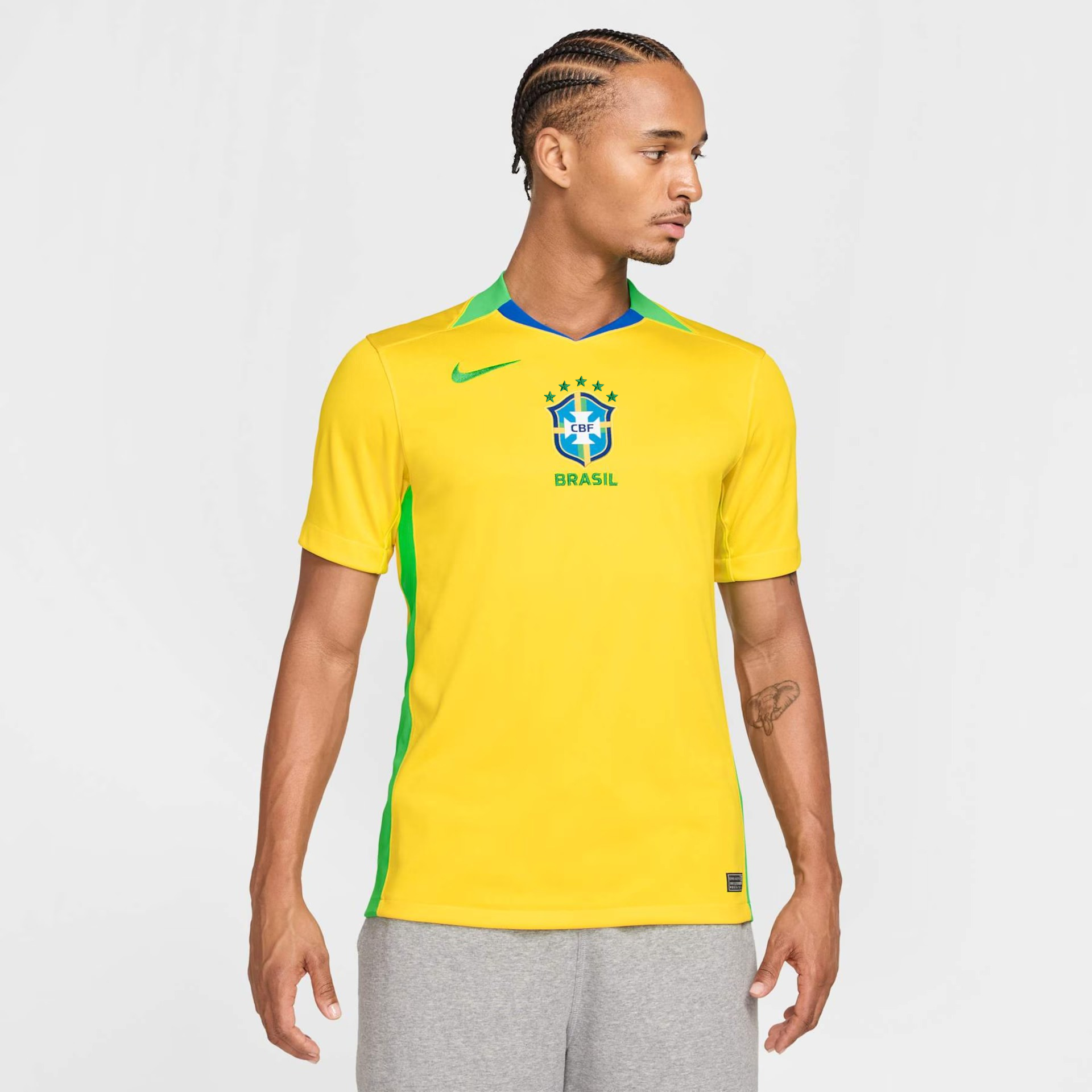 O modelo 2025/26 traz o tradicional amarelo do Brasil, agora em um tom atualizado, com detalhes em azul e verde. Uma camisa que respeita o DNA da Seleção e reforça sua presença global, mantendo o visual icônico que todo torcedor reconhece.