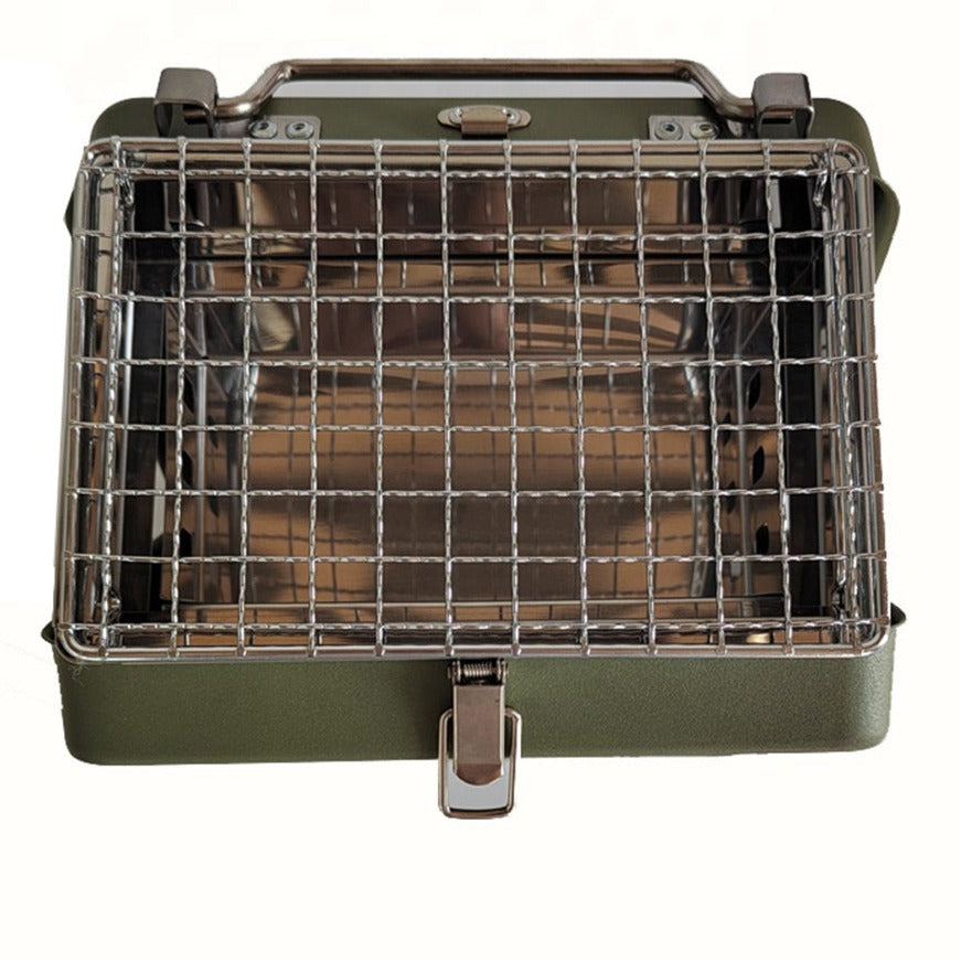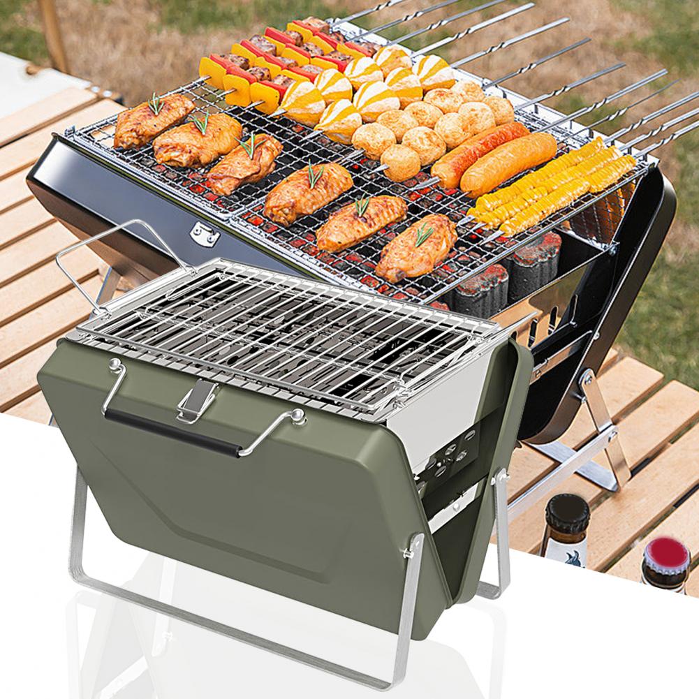 Esta grelha é portátil para que você possa saborear seus alimentos favoritos onde e quando quiser. Além disso, ela se dobra para facilitar o armazenamento quando não estiver em uso.