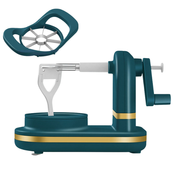 ✅Gire a manopla no sentido anti-horário até que a maçã esteja descascada;