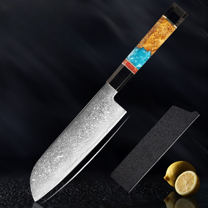Facas de chefe, estas facas multiuso é fabricada com tecnologia moderna e artesanato tradicional; sua lâmina de aço Damasco VG-10 de 67 camadas japonesa foi tratada criogenicamente e combinada com uma alça perfeitamente equilibrada que oferece precisão e controle superiores para chefs domésticos e profissionais da culinária.