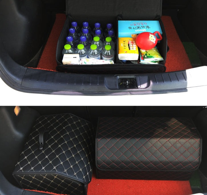 Design prático de armazenamento - O design prático é conveniente para armazenar os itens do porta-malas do carro. com 2 compartimentos. O grande espaço de armazenamento é suficiente para atender às suas necessidades.