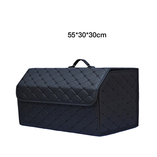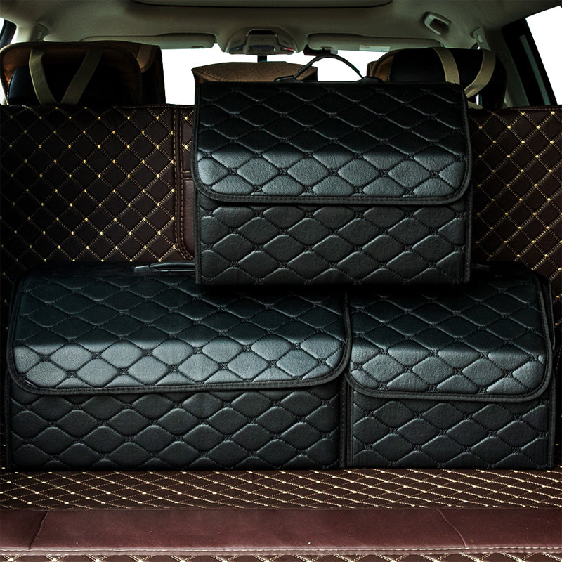 Design precioso - A combinação de material de couro e design de listras torna esta caixa de armazenamento de porta-malas de carro uma combinação perfeita com o espaço interior do carro.