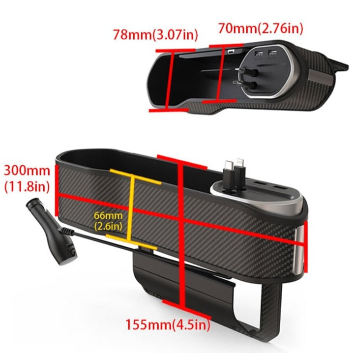 Organizador Para Carro Ultra Carbon Com Cabos Para Carregar Celulares
