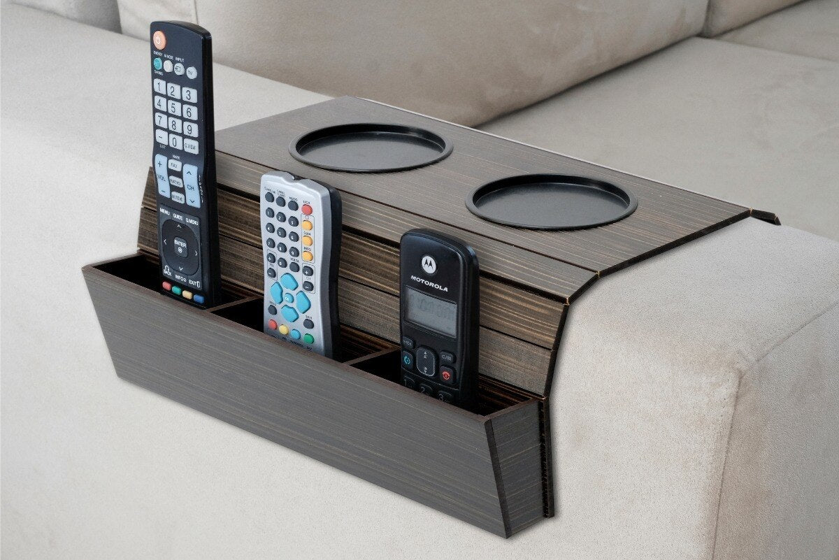 Suporte organizador para sofá com porta copos e controle Dobrex