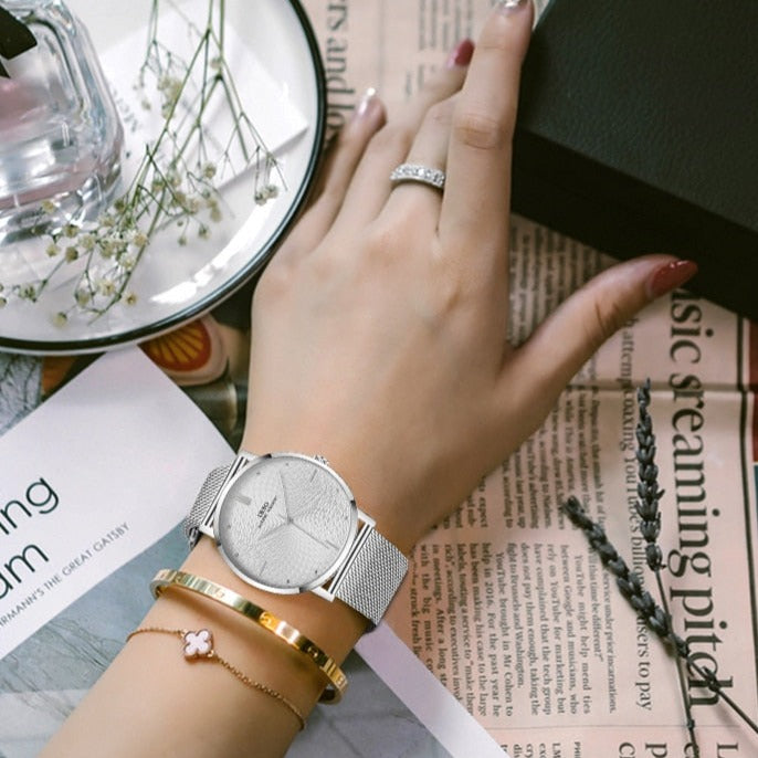 Esse é um Relógio feito de Aço Inoxidável, um material resistente e duradouro, com acabamento e movimento em quartzo. Sua pulseira em couro ou aço é excelente, dando leveza e graciosidade ao acessório, além de facilitar a transpiração da pele.