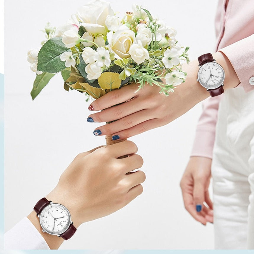 Esse é o presente ideal para dar sua amada ou amado, tendo duas opções de pulseiras, uma é feita de um couro leve e confortável e a outra de aço inoxidável também leve e confortável, tornando a peça perfeita para o casal usar no dia a dia.