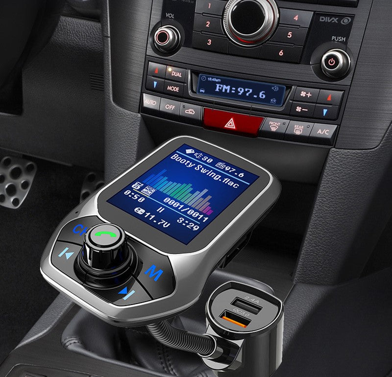 O Transmissor de Áudio e Radio possui todas as funções de que você precisa! Com Bluetooth e ligações para ligar e desligar sem tocar no seu celular, suporte a reprodução música e dot matrix display; esse transmissor é o melhor equipamento para aproveitar ao máximo seus dias de dirigir.